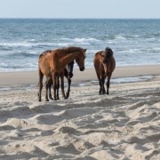 We are located 8 miles up the beach from the end of highway 12 and ACCESSIBLE BY 4WD ONLY. Due to the uniqueness of this area we suggest you contact the homeowners prior to booking. Carova Beach is one of the last remaining beaches on the Atlantic Coast that seems to have been lost in time. Come experience Life On The Island. Home to about 200 year round residents and the Corolla Wild Horses, it is a place where everyone knows each other and lives by the changing tides. Watching the wild horses strolling across the sand dunes and stopping to graze on sea oats is just another day in paradise here on Carova. It always fills me with a certain” peace” and “awe” when the dolphins swim up and down the ocean, jumping and splashing. Strolling along the beach to find sand dollars and whelks left from the changing tides is another favorite pass time here on the beach. Be sure to take a dip in that beautiful green Carolina Sea where any worries and stress you may have brought with you are completely washed away. Rise early one morning to watch the sunrise over the ocean, enjoy the brilliant red sunsets over the sound, then look up to see a beautiful star filled Carolina night sky. And as you -lay your head on the pillow at the day’s end, let the ocean sing you to sleep.